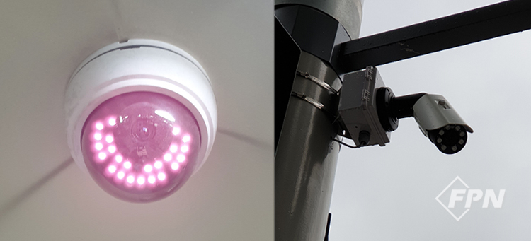 NRI를 사용하는 야간카메라(Night vision)는 야간투시경 말고 하나 더 있습니다. 길거리에서 [그림 2]와 같은 카메라들을 보셨을텐데요. 이 카메라도 야간투시경과 같이 NRI 영역을 사용합니다. 대신 LED로 특정 파장을 내뿜어 반사돼 오는 파장을 증폭해 보여줍니다.