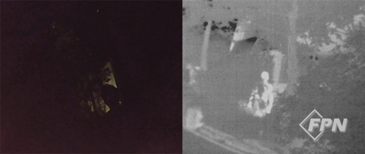 이해를 돕고자 밤에 나가 영상을 찍어 봤습니다. [그림 3]은 야간에 필자가 가진 저가의 수동조명 카메라(Night vision camera)와 열화상 카메라로 찍은 영상입니다. 수동조명 카메라로 찍은 영상을 보면 실루엣이 제대로 촬영되지 않는 걸 알 수 있습니다.