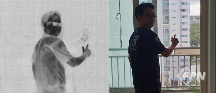 그에 반해 열화상 카메라 white mode(화면상에 열이 많은 쪽을 흰색으로, 열이 적은 쪽을 검은색으로 표시하는 기능)로 찍은 오른쪽 그림을 보면 거리가 멀어도 별 무리 없이 실루엣이 확인되는 걸 알 수 있었습니다(이번 글을 쓰면서 알게 됐는데 심령학회에서도 열화상 카메라를 이용한다고 하네요).