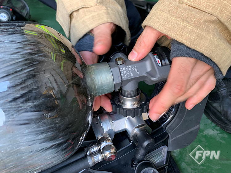 4. 직관적인 공기 공급 퍼지 버튼 이것은 기존 제품에서는 볼 수 없었던 기능인데 면체 앞부분의 고무 버튼을 눌러 순간적으로 공기를 공급해 주는 장치다. 주로 면체 내 온도가 올라가 김이 서릴 때 바이패스 밸브를 열고 닫아 김을 제거하는데 이 제품은 푸쉬 버튼이 있어 스프레이 뿌리듯 버튼을 눌러 보다 직관적으로 공기를 공급할 수 있다.