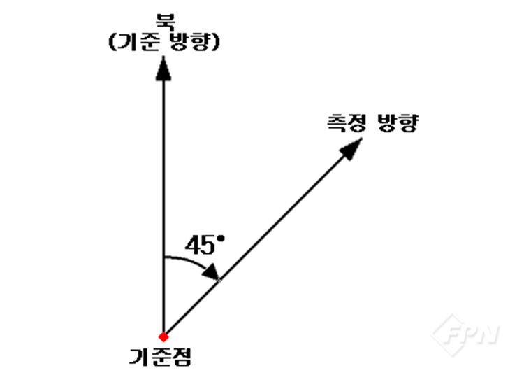 항법 정보들의 용어나 약자 중에는 그 의미를 쉽게 파악할 수 있는 것들도 있지만 생소한 것도 많다. 그래서 생소한 항법 정보들의 용어와 약자들이 어떤 의미인지 정리했다. 설명에 앞서 방위각의 정의를 알 필요가 있다. 방위각이란 방향을 각도로 표현한 것으로 [그림 5]에서 측정 방향의 방위각은 북쪽을 기준 방향으로 해 측정 방향까지 시계 방향으로 측정한 각도다.