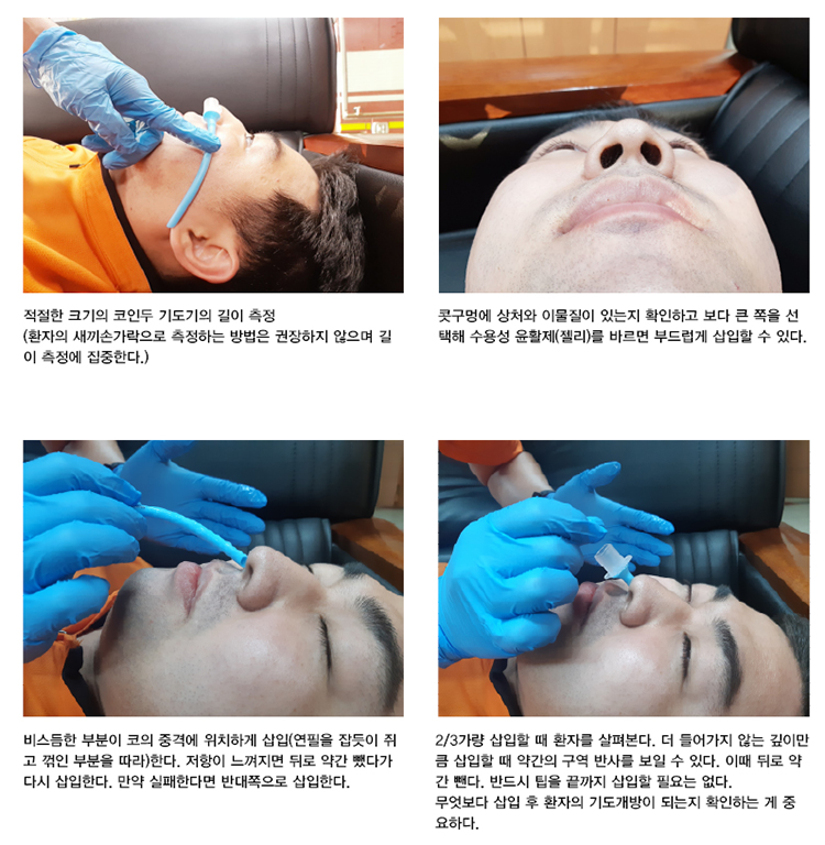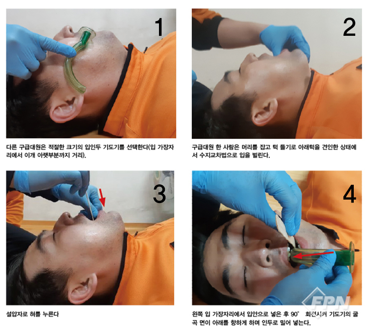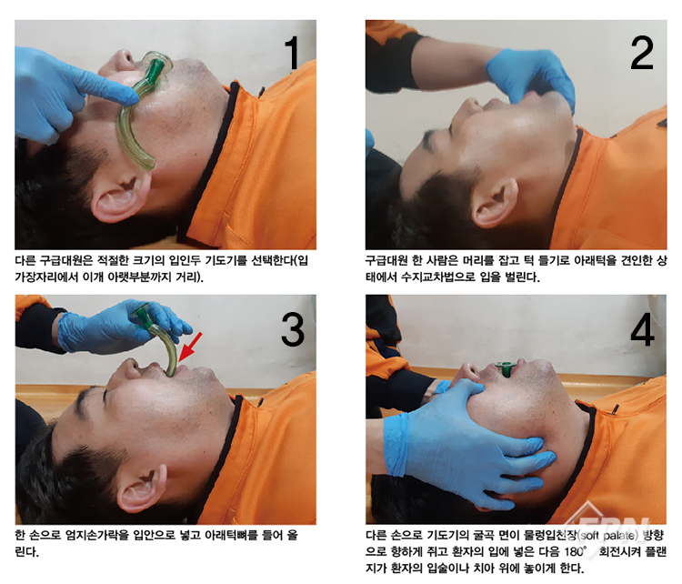 입인두 기도기를 삽입하는 방법은 크게 두 가지로 알려져 있으나 보편적인 사용법은 ‘혀턱들기법’이다. 충분히 훈련된 구급대원이라면 별도의 도구 없이 빠르게 적용할 수 있기 때문이다.