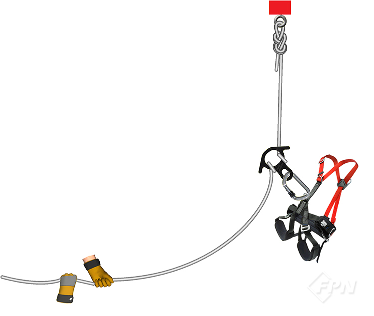 3. 1인 하중의 자체 확보 1) 안전벨트 가슴 어센더 이 기술은 특히 사다리 또는 낮은 암벽의 피치를 오르는 데 적합하다. 추락 거리가 없어 추락계수가 매우 낮다. 단점은 톱니로 인해 내려가기가 어렵다.