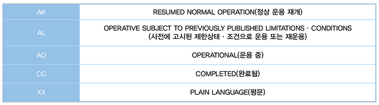 ※ 만약 부호선택 기준에 없다면 ‘XX’로 기재한다. 자세한 내용은 ‘항공약어 및 부호 사용에 관한 기준’ 참조