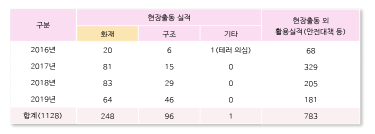 게다가 소방드론 운용자와 현장경험 부족으로 지역의 모든 소방서가 아닌 일부 소방서에서만 소방드론을 운용했던 실적이었다(서울소방의 경우 소방드론 운용실적 상위세 곳의 소방서가 전체 운용실적의 90% 이상을 차지한다).