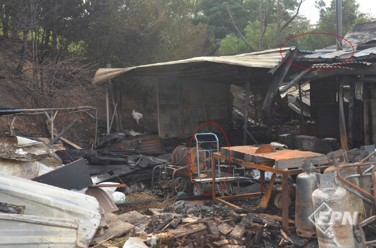 화재 현장에서 발화지점으로 추정되는 부분은 주택 내부 법당과 주택 외부 두부를 만드는 아궁이 등 두 곳이었다. 그런데 현장에 도착했을 땐 두부를 만드는 구조물과 부뚜막, 가스시설 일부를 굴삭기로 잔화 정리한 상태였다. 의심되는 발화지점이 사라진 것이다.