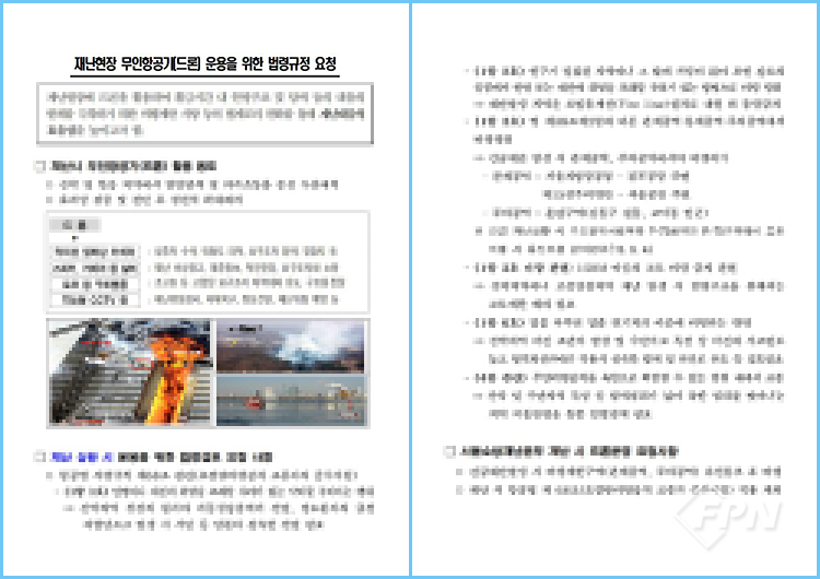 소방드론 긴급비행은 법령에 명시된 비행 승인 권한이 있는 관할 행정기관에서 적법한 절차로 승인해준 것이라 수도권 통제공역에서 재난 발생 시 운용하는 데 직접적인 문제가 있었던 건 아니다. 다만 항공기와 같이 법으로 보장받을 수 있는 예외 조항 특례가 없어 재산손실이나 인명사고가 발생할 때 상황이 복잡해질 가능성을 배제할 수 없었다. 그래서 관할 행정기관 권한 범위 내가 아닌 항공기와 같은 법령으로 명시돼 보장받길 원했다.