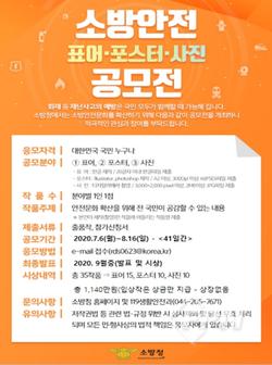 공모에는 오는 7월 6일부터 8월 16일까지 분야별로 1인 1작품 출품 가능하다. 우수작품 35점에 대해선 9월 중 심사를 통해 총 시상금 1140만원과 소방청장상이 수여된다.