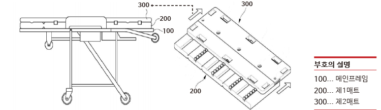 이에 대한 해결방안으로 환자를 측면으로 이동할 수 있도록 환자 이송용 주 들것과 보조용 들것(분리형 들것 포함)을 발명하게 됐다.