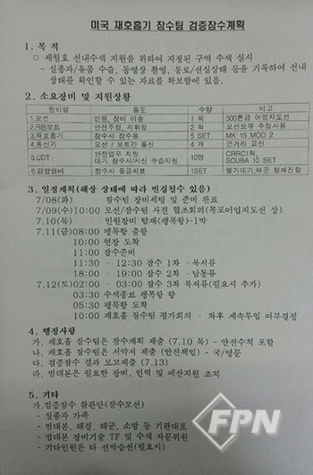▲ 회의 결과 미국 재호흡기 잠수팀에 잠수를 승인했다는 문건
