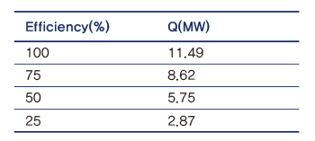 효율이 낮은 이유는 수증기로 바뀌기 전 흘러가는 물과 300°C로 가열되기 전 밖으로 흘러나오는 수증기에 의해 발생한다. 효율성의 효과는 [표 2]에서 확인할 수 있다. [표 2]는 10°C, 1㎏의 물이 230lpm의 유량으로 공급될 때 300℃의 수증기가 되면서 흡수하는 열량을 효율과 연결한 거다.