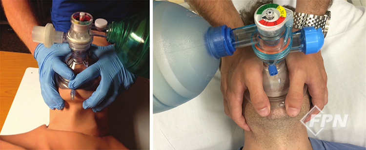 따라서 이런 상황이라면 백 밸브 마스크나 휴대용 산소 소생기를 적용하는 등 비침습적인 양압 환기를 제공해야 할 겁니다.