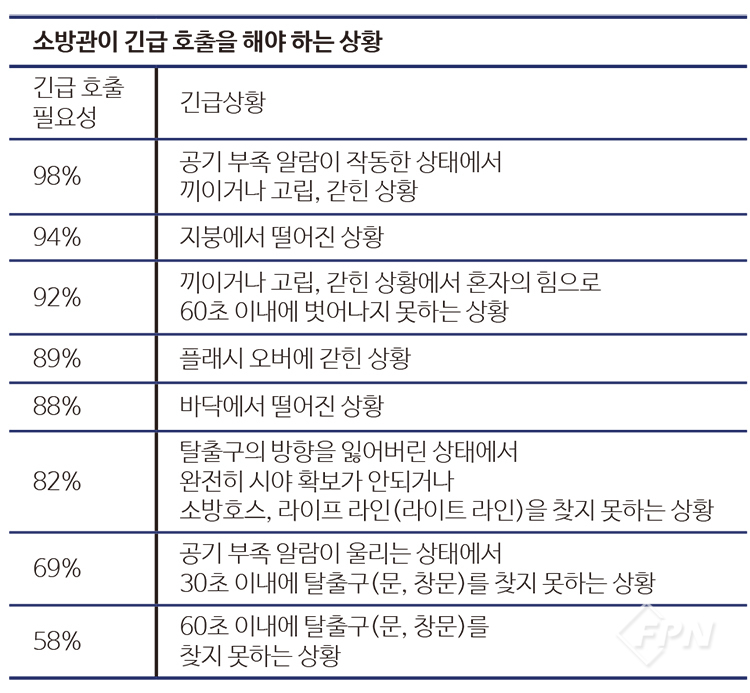 우리가 위험한 상황에 빠졌다고 가정한다면 그 상황은 긴급 호출을 할 만한 정도의 위험성이 있는지 어떻게 알 수 있을까? 빠른 판단을 요구하는 현장 속에서 무전기를 손에 들고 여러 가지 생각으로 주저하는 소방관에게 긴급 호출 타이밍의 기준이 정립돼 있다면 중요한 타이밍을 놓치지 않고 도움을 요청할 수 있을 거다.