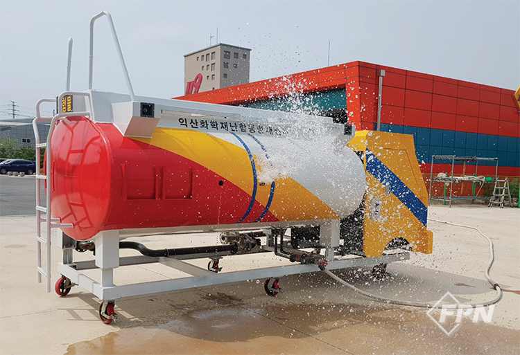 탱크 전면화재에서 고온의 열 기류에 노출된 포는 쉽게 깨져버리고 액표면에 안착하기 어렵습니다. 따라서 대용량의 포수용액을 방사하는 대형유류저장탱크 화재진압 시스템을 선택했습니다.