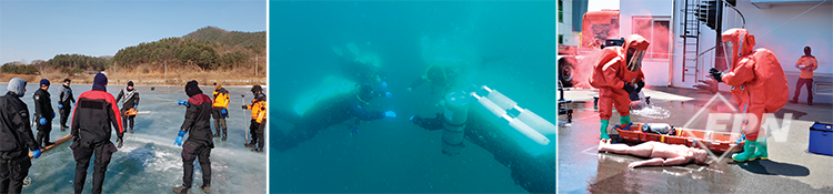 지속적인 수중훈련으로 수난 전문대원을 양성하기 위한 수난구조훈련장도 있습니다. 수난구조훈련장을 활용해 24회, 220명이 훈련을 했습니다.
