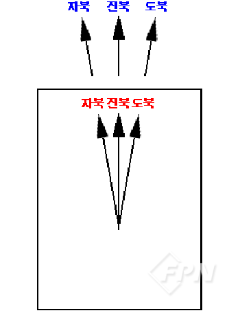 [그림 5]와 같이 지도상의 진북 방향을 실제 진북 방향으로 돌려놓든, 지도상의 도북 방향을 실제 도북 방향으로 돌려놓든, 지도상의 자북 방향을 실제 자북 방향으로 돌려놓든 모두 지도정치가 된다.