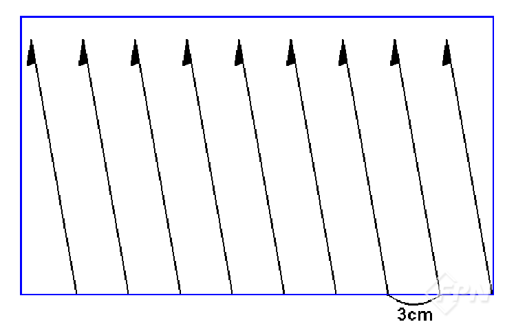 그리고 [그림 9]와 같이 지도상의 산행할 지역 전체에 자북선들을 3㎝ 정도의 간격으로 그려둠으로써 나침반을 편리하게 사용할 수 있도록 한다.