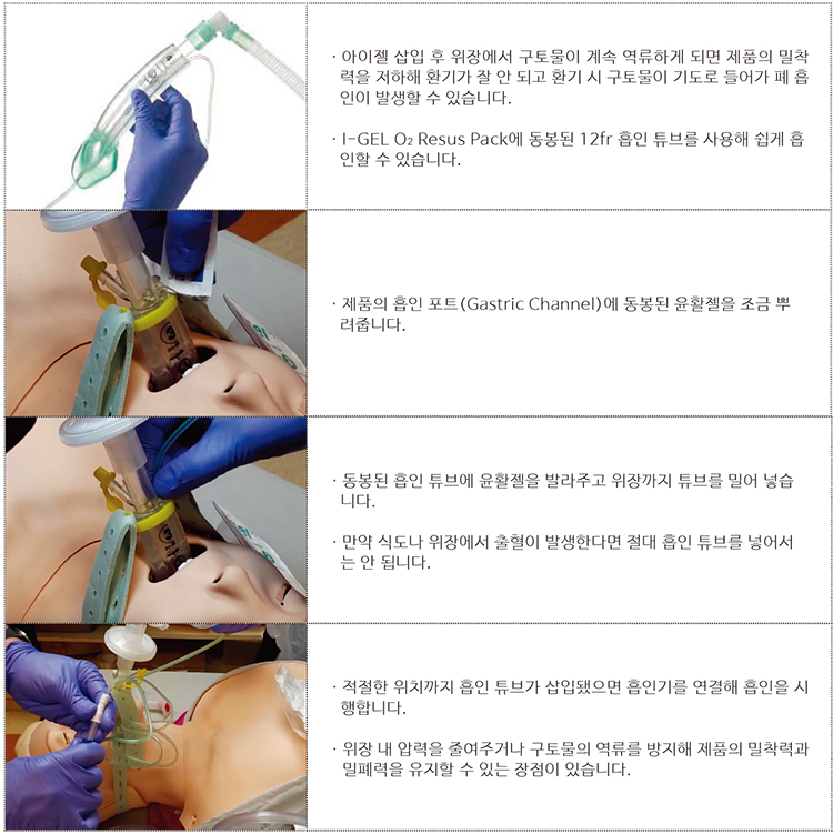 아이젤 삽입 후 위장 내부를 흡인하려면?