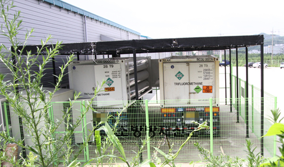 공장 관계자는 “듀폰사에서 공급되는 HFC-23가스는 3가지의 용기로 보급되는데 그 중 하나가 튜브트레일러”라고 소개하며 “간혹 톤실린더가 들어오긴 하지만 대부분이 튜브트레일러를 통해 공급되고 있다”고 밝혔다.