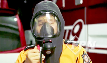 따라서 방화두건이 공기호흡기 마스크 안면 창의 가장자리를 감싸므로 공기호흡기 마스크의 안면 창도 보호받을 수 있게 된다.