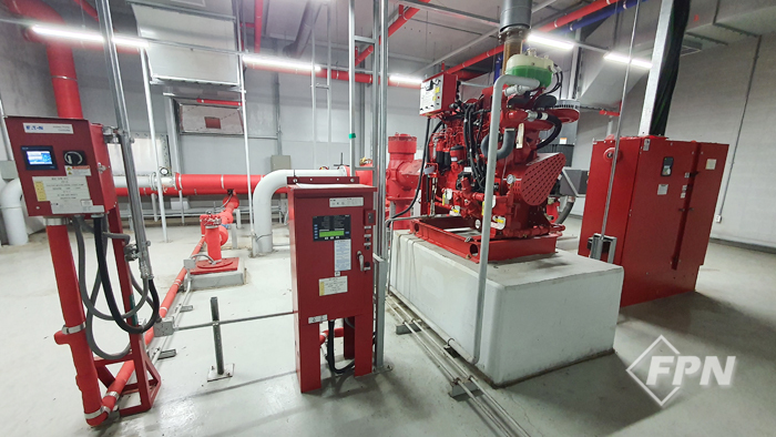 ![]() ▲ 전기식 소방펌프와 엔진식 소방펌프가 예비로 설치된 소방펌프실 © 소방방재신문 |