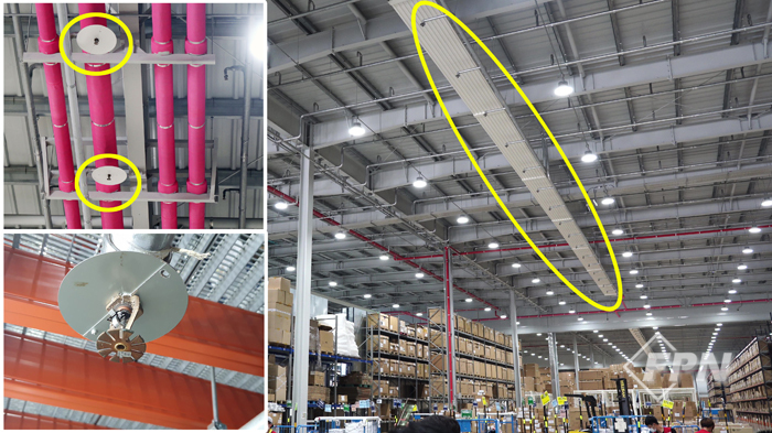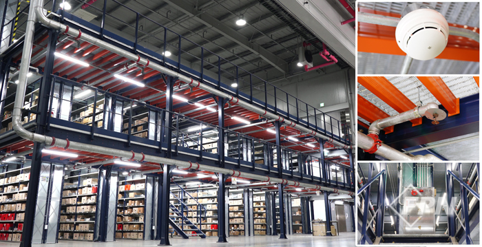 BMW 물류센터 내 일부 구역은 3개 층으로 구성된 메자닌의 각 층에도 ESFR 헤드를 달았다. 메자닌 최상위 층과 맞닿는 천장은 물론 각 층 중앙 통로 곳곳에도 화재에 대비한 헤드가 설치됐다.