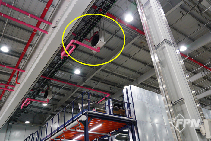 ![]() ▲ 각 단 하부가 막힌 밀폐형 선반이 적용된 랙크에는 인랙 스프링클러 헤드를 각 단별 곳곳마다 설치했다. © 최영 기자 |