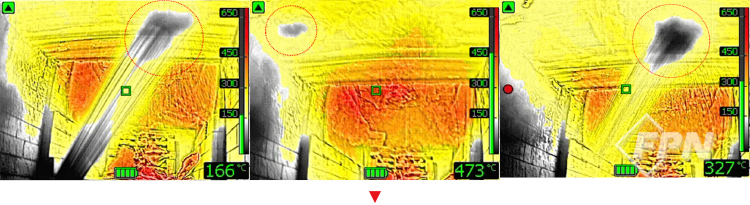 따라서 뜨거운 연기 층에 주수돼도 원활히 증발하지 않고 대부분 바닥으로 떨어지게 됩니다. 이는 펄싱 주수기법의 효과와 목적을 전혀 달성할 수 없는 방법이라 차선책으로 물방울 크기를 선택하고 주수각도를 포기하는 방법으로 운영하고 있습니다.