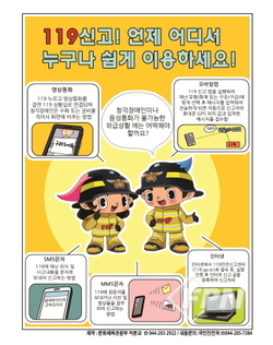 이는 청각장애인이나 음성통화가 곤란한 경우에 여러 매체를 통해 긴급 상황을 전달할 수 있는 서비스다. 문자 신고는 119 번호로 문자 입력 후 전송하면 신고가 접수되며 사진과 동영상도 첨부할 수 있다.