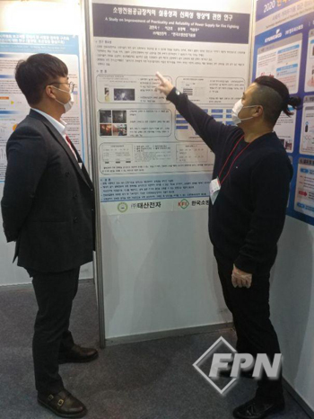 ![]() ▲ 태산전자 관계자가 전원공급량과 변화량 표시 및 기록저장이 가능한 소방전원공급장치에 대해 설명하고 있다. © FPN |