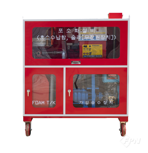![]() ▲ 중경산업의 이동식 포소화설비, 소화설비 겸용 무전원 장치(예비전원_솔라 장착) © FPN |