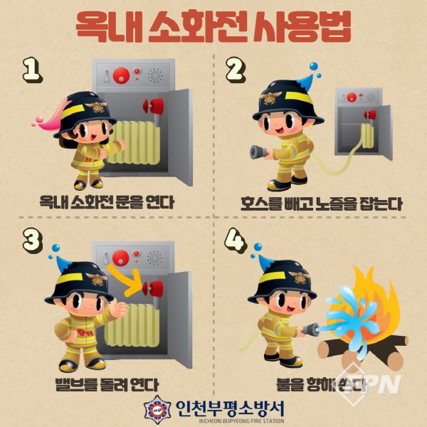 [FPN 정현희 기자] = 부평소방서(서장 김기영)는 화재 발생 등 위급상황 시 초기 진화를 못해 피해가 커지는 일을 줄이고자 옥내소화전 사용법을 안내를 한다고 밝혔다.