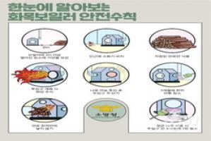 화목보일러 안전관리 방법에는 ▲주기적인 연통 내부 그을음 청소 ▲난로 주변 2m 이내 가연물 적재 금지 ▲보일러 근처에 방화수 및 소화기 비치 ▲화재 발생 시 화재 확산 방지 위한 블록 및 벽돌 설치 등이 있다.