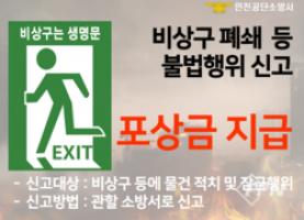 이는 특정 건축물의 소방시설 폐쇄나 물건 적치 등 위법행위를 신고하는 국민에게 포상금을 지급하는 제도이다.