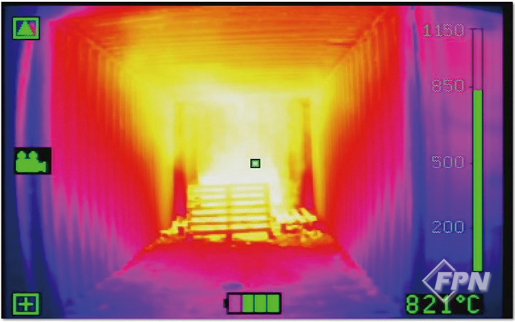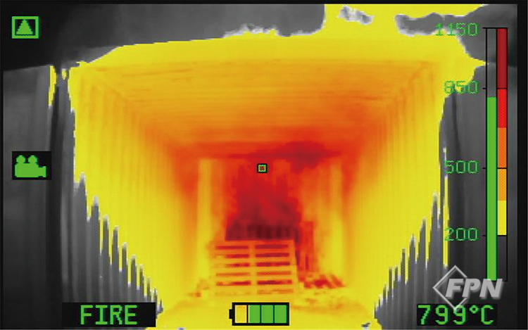 또 대부분 소방용 TIC는 0~149℃ 사이에서 고감도 모드(high sensitivity)로 작동하고 화점에 가까워지거나 열기가 많은 환경, 즉 149℃(300℉)보다 높은 온도로 측정되는 픽셀이 많아질 때 저감도 모드(low sensitivity)로 전환됩니다(대부분 TIC의 시야각으로 보이는 검출기 전체 픽셀의 32%가 기준).