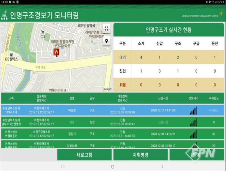 3. 현장지휘관이 탑승하는 지휘차량에 수신기와 웹 패드 세트를 추가 배치해 현장안전관이 활용토록 하는 방법(즉시 시행하기 어려운 기계적인 문제점의 개선방안이 아닌 자체 운용방안) 현재 경기도는 현장에 안전관이 별도로 배치된다. 현장 활동 대원을 모니터링하고 이상 상황이 발생하면 현장지휘관에게 전술 수정이나 탈출명령 건의 등의 임무를 수행하고 있다. 안타깝게도 안전관은 지휘차량에 비치된 웹 패드를 이용하기 때문에 본부 서버에 현장 활동 대원의 데이터가 수신되지 않으면 현장 대원의 상황을 정확히 알 수 없다.