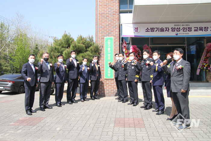 ![]() ▲ 20일 소방기술자 양성ㆍ인정 교육장 현판 제막식에 참석한 관계자들이 기념촬영을 하고 있다. ©FPN |