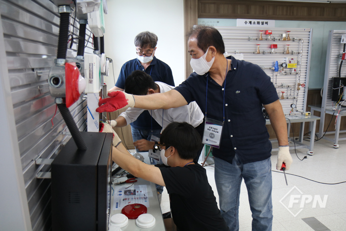![]() ▲ 자동화재탐지설비를 직접 설치하는 수강생들 ©FPN |