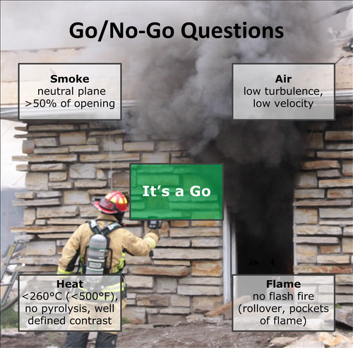 Go/No-Go 기준에 따라 ‘No-Go(진입 불가)’ 결정을 내린다고 해서 ‘Go(진입)’가 중단된다는 건 아닙니다. 이는 내부로 진입하기 전이나 화점에 도착할 때까지 화재 성장을 늦추는 조건을 만들어 ‘Go’ 결정을 내릴 수 있도록 해야 한다는 의미입니다.