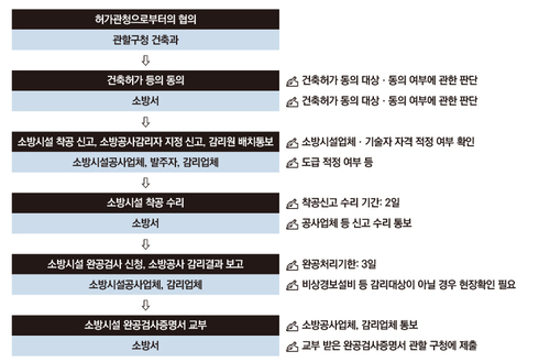 각 관련 법령에서 규정하는 증명서의 교부는 그 법령에서 정하는 규정에 위반이 없다는 사실을 관련 기관에서 확인해주는 걸 의미하므로 반드시 첨부돼야 하는 서류다. 이런 각 관련 법령의 증명서 중에서 건축물의 안전 확보에 필수적인 게 바로 ‘소방시설 완공검사증명서’다.