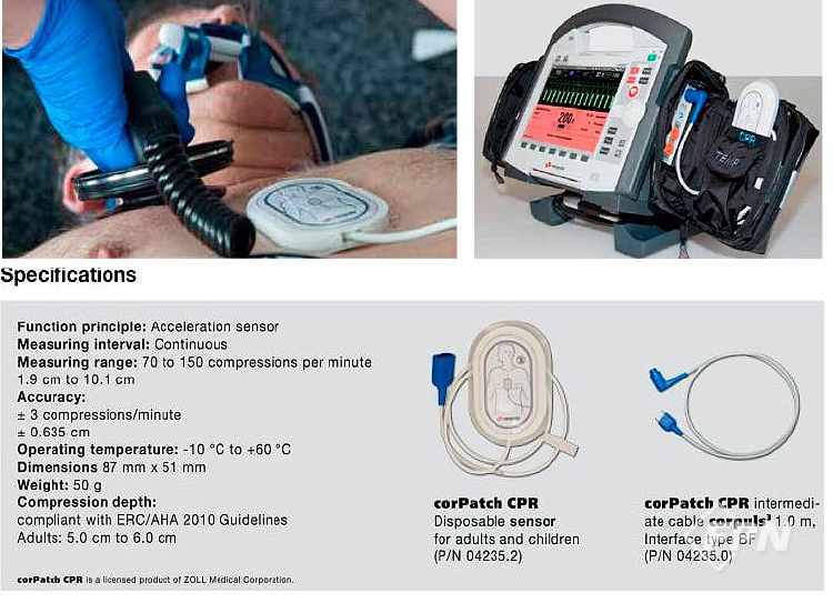 현장에서는 주로 고급형 제세동기와 연동되는 제품이 보편화돼 있으며 별도의 디바이스를 장착하는 방식, 제세동기 패치에 함께 딸려 나오는 방식 등으로 나뉩니다.