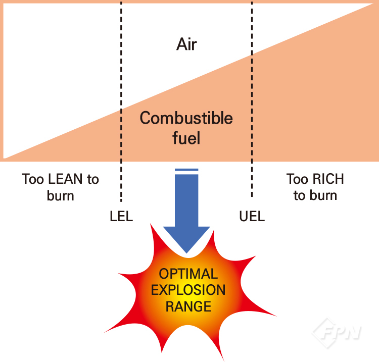 [그림 6]은 폭발이라는 게 너무 농도가 높아도, 낮아도 안 되고 기체에 따른 적절한 범위에 도달한 경우에만 폭발한다는 걸 시각적으로 잘 설명해준다.