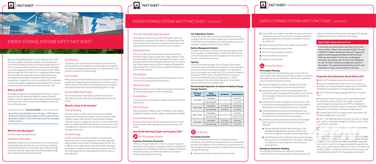 글을 마치기 전 현재 공개된 NFPA의 ESS와 관련된 안전 요약서(Safety Fact Sheet) 내용 일부를 참고로 공유한다.