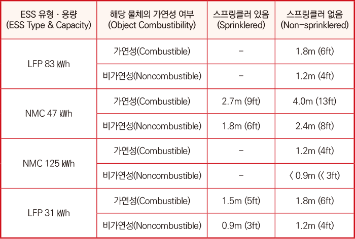 ESS나 배터리 물류창고 등 시설에서는 이를 참고해야 한다(하지만 국내법상 전기시설에서는 수계시설 즉 스프링클러의 설치가 금지돼 있다. 이는 현 NFPA 855와는 정면으로 위배된다. 여전히 리튬이온배터리 화재ㆍ폭발의 안전기준에 대해 전 사회적인 고민과 합의가 필요하다).