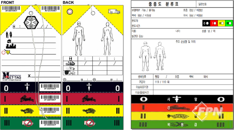 트리아지 태그(Triage Tag)는 한국 실정에 맞는 분류 방법인가? 환자 분류 태그는 1960년대 쿠바의 핵미사일 위기에 대비해 미국 플로리다 잭슨빌 출신의 민방위 담당자가 최초로 발명한 게 기원이다. 시간이 흘러 많은 전쟁과 테러, 재난, 다수 사상자 사고를 거치며 디자인이 조금씩 수정됐지만 어쨌거나 환자 분류표는 1960대 이후 크게 바뀌지 않았다.
