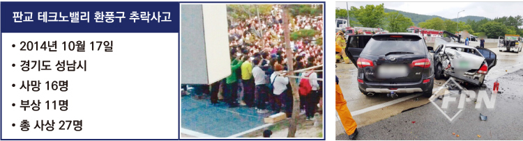 2014년 판교 테크노밸리에서 콘서트를 관람하다 환풍구를 덮고 있던 철제 덮개가 하중을 이기지 못하고 무너져 내리는 사고가 발생했다. 16명이 사망하고 11명이 부상했는데 사고 현장이 좁고 환자가 한 곳에 집중된 특징이 있다.