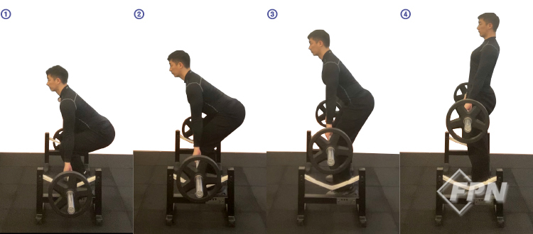 이렇게 데드리프트를 하게 되면 바벨이 지면에서 조금 더 높이 있어 무릎이나 허리부상이 적고 바벨을 내릴 때도 안전합니다.