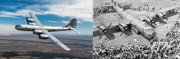 게다가 B-29의 작전 반경은 약 5천㎞, 최고 속도는 약 575㎞/h, 비행 가능 고도는 3만ft 이상으로 사실상 적국의 전투기들이 쉽게 접근할 수 없는 위치에서 원자폭탄을 투하하도록 특별히 설계된 유일한 폭격기였다.