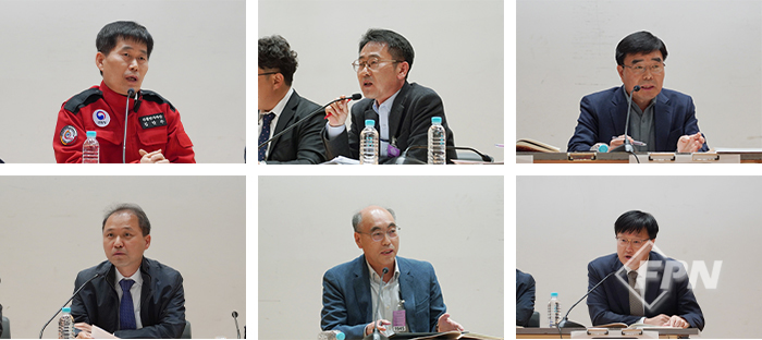 ![]() ▲ (왼쪽 상단부터 시계 방향으로) 김만주 산림청 산불방지과장, 차상화 행정안전부 환경재난대응과장, 박도환 한국임업진흥원 이사, 이규태 한국산불방지기술협회장, 채희문 강원대 산림환경과학대학 교수, 이창배 국민대 산림환경시스템학과 교수 © FPN |