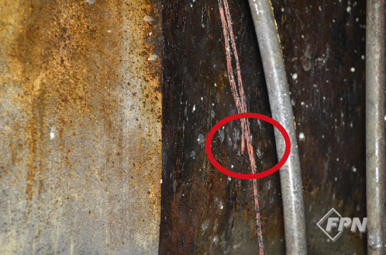 전선에서 발생한 화재 대부분은 증거를 남기고 그 증거는 부하 측에 잔류하기 마련이다. 다만 통전 여부를 확인하기 위해 인입된 전선의 차단기나 배전반의 차단기 등을 확인할 필요가 있다. [사진 14]와 같이 교반실 내부로 연결된 전선에 단락 흔적이 식별된다는 건 통전됐다는 증거다.
